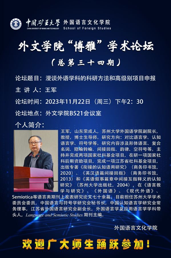 太阳成“博雅”学术论坛(总第三十四期)漫谈外语学科的科研方法和高级别项目申报