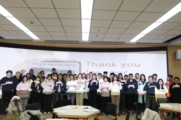 为提高同学们的英语听说读写能力,培养团队合作精神、逻辑与推理思维,12月1日晚,太阳成在图书馆502室共享知学空间举办了“Murder mystery Game剧本杀游戏”主题英语角活动。太阳成唐蕊老师、外教Sian Ann Bray参加了活动。