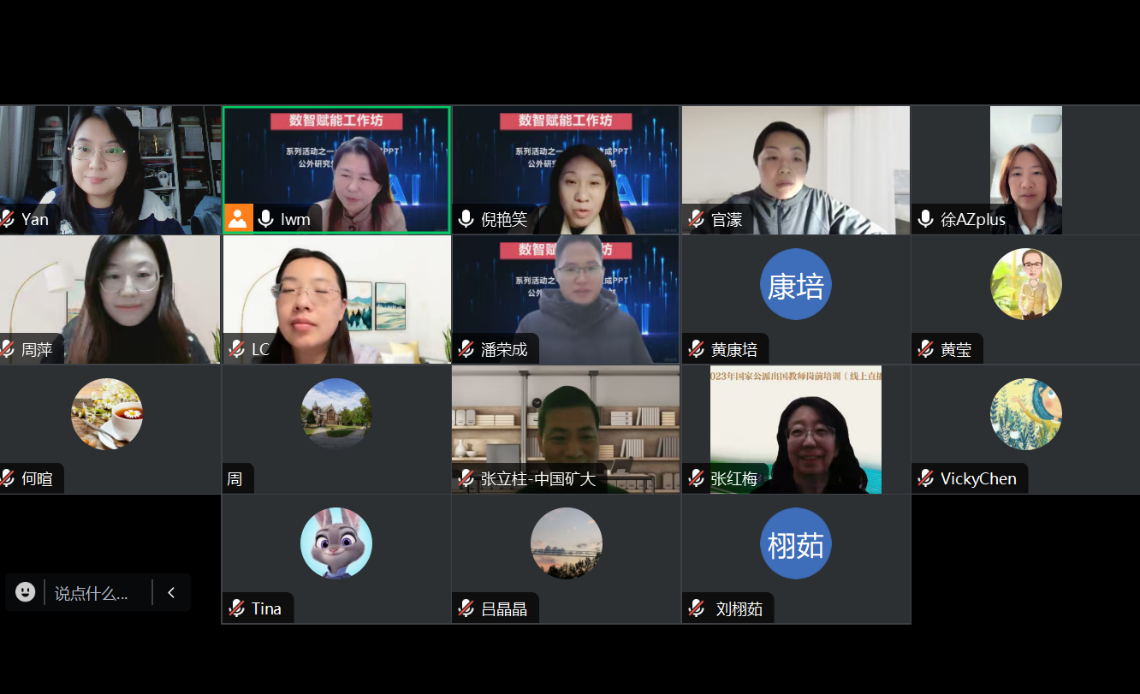 2023121514:30,公外研究生部党支部通过腾讯会议线上开展了“支部书记讲党课”活动——数智赋能工作坊:如何利用AI一键生成PPT,党课由支部书记李文梅老师主讲,来自公外研究生部、大学外语部、英语系、德语系的30余位老师和研究生参加了此次活动
