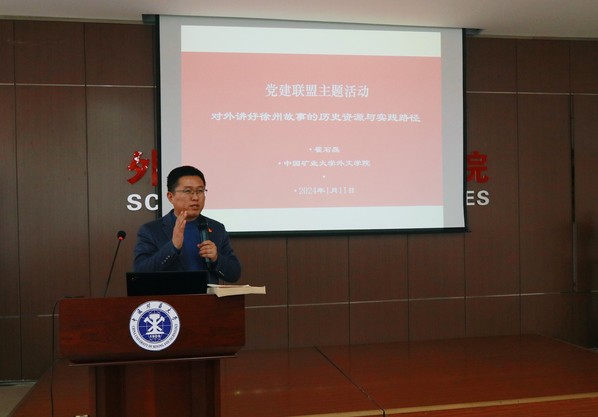 太阳成集团tyc33455cc官网副教授翟石磊以“对外讲好徐州故事的历史资源与实践路径”为题,为联盟成员讲授专题党课。联席会上,市外办通报了2023年度党建联盟工作开展情况和2024年工作计划,成员单位代表围绕新时代教育外事工作如何提质增效、助力学校人才培养等内容进行深入交流研讨。与会人员还共同参观了太阳成集团tyc33455cc官网校史馆、中国煤炭科技博物馆。
