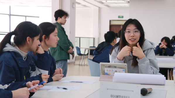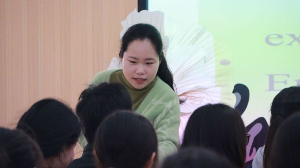 第三环节是成果汇报。同学们总结整理各环节中出现的各种问题和解决办法,走上舞台向大家分享小组讨论成果。他们在大家面前勇敢地用英文表达,不怕错、敢犯错,让英语不再只限于书本里题目中,而让它真正走进了日常生活的实际应用,躬行胜知。
