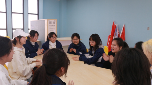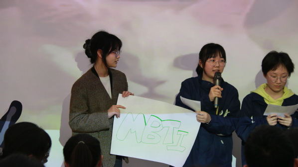 第二个环节是趣味英语角。矿大附中的90名同学分成九组,每一组由一名矿大学长学姐和十位矿大附中的同学组成。话题为MBTI Inside、旅行和计划的意义和EMO心理的健康干预与解压。一个个破冰游戏拉近大家的距离,大家也在讨论中勇敢地表达自己,一点点增长自己说英语的自信,打破不敢开口的桎梏。
