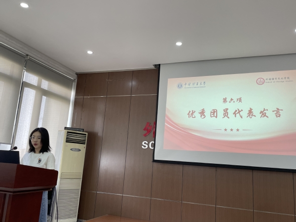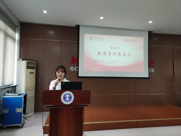 新团员代表魏穆雍同学和优秀团员代表谢林君同学依次进行发言,号召在场的新团员们:要记住今天的青春誓言,刻苦学习、锐意进取,以青春的智慧和汗水谱写新篇章,以昂扬的精神和奋斗的姿态开启新征程。
