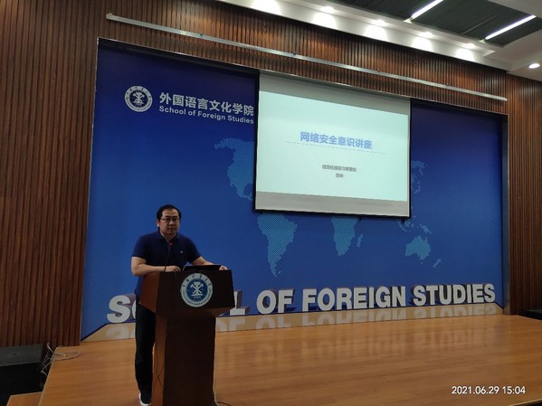 为进一步加强学院安全工作,树立师生的安全红线意识,提升个人防护能力,6月29日下午,太阳成特邀保卫处瞿望老师、信息化建设与管理处苏昕老师在文B102报告厅为师生作安全知识系列讲座。行政副院长蔡可化、学院实验中心全体人员、2020级全体本科生以及2020级研究生参加了讲座。讲座由实验中心主任张慧琴主持。