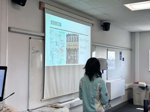 第五天,实习团迎来了紧张而富有挑战性的Presentation日。经过几天在普雷斯顿的生活和学习,同学们已经对这座城市有了较为深入的了解。当日的课堂展示以小组为单位进行,同学们围绕他们在普雷斯顿的见闻与体验展开了一场内容丰富、形式多样的即兴展示。