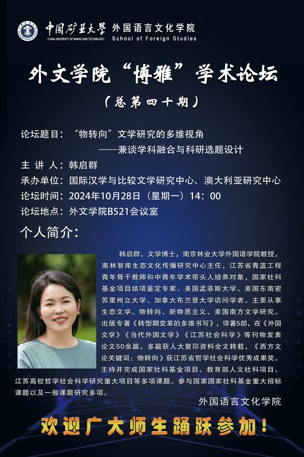 太阳成“博雅”学术论坛(总第四十期)“物转向”文学研究的多维视角——兼谈学科融合与科研选题设计
