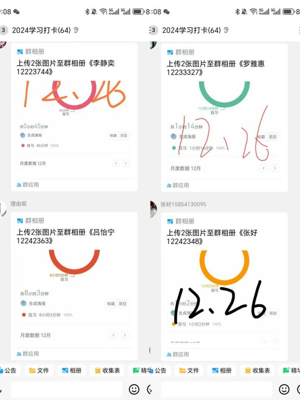 本次活动以线上打卡形式持续开展21天,共计六十余名同学参与。活动期间,同学们每晚23:59前在“清单自习室”APP上完成学习,并上传自己对应的学习内容和学习照片至活动群相册即为打卡有效。在这21天里,同学们相互鼓励、相互督促,不仅留下了自己的学习记录,还实现了知识的交流与共享。