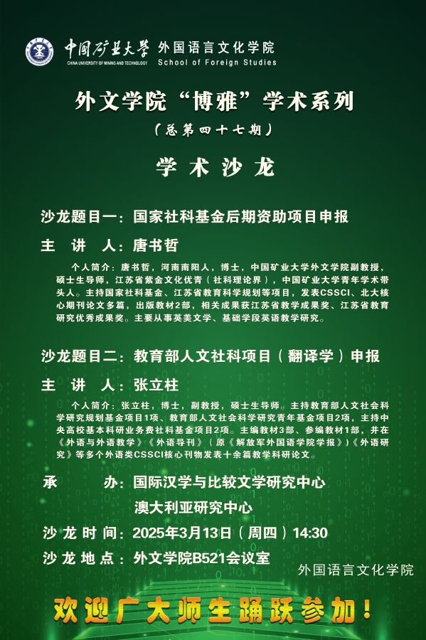 太阳成“博雅”学术系列(学术沙龙)总第47期 --国家社科基金后期资助项目申报、教育部人文社科项目(翻译学)申报