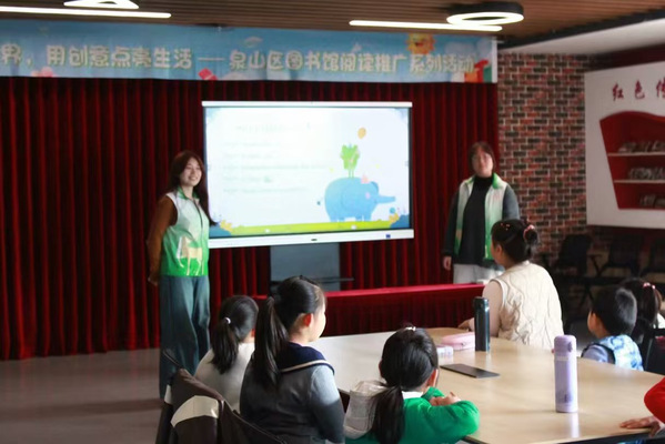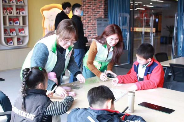 活动分为校内制作与馆内实践两大环节。在前期筹备阶段,学院组织学生创作特色词卡,涵盖日常用语、学科词汇等主题。当日下午,志愿者代表赴泉山区图书馆开展实践教学,通过理论讲解 + 创意制作 模式,指导儿童完成个性化词卡创作。活动现场设置互动游戏,将单词记忆与趣味手工相结合,激发少年儿童学习兴趣。