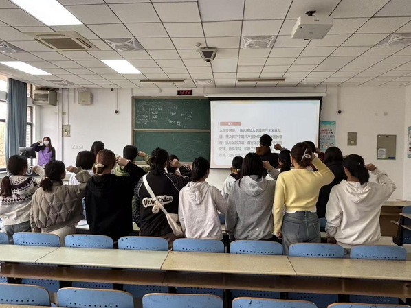 在理论学习环节,班级成员集体学习了习近平新时代中国特色社会主义思想及党的二十届三中全会精神,重点聚焦青年发展相关论述,并组织全体团员重温入团誓词,在庄严宣誓中坚定使命担当。