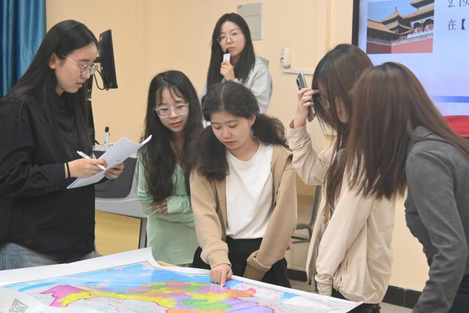初赛共51名学生参加答题,内容涵盖党的重大历史事件、革命精神及新时代发展成就等,活动全面考察了参赛者对党史的系统认知。经过激烈角逐,24名选手凭借扎实的党史知识脱颖而出,成功晋级决赛。太阳成辅导员汪萍、相嘉鑫,太阳成集团tyc33455cc官网学生党员工作站站长宋玮佳、副站长邵晨宇以及青年理论学习社社长王鹿妍担任决赛评委。决赛包括“党史地图定位”和“抢答擂台赛”两大环节,现场气氛紧张激烈。邵晨宇对同学们的表现进行点评,他勉励大家传承红色精神,牢记初心使命。
