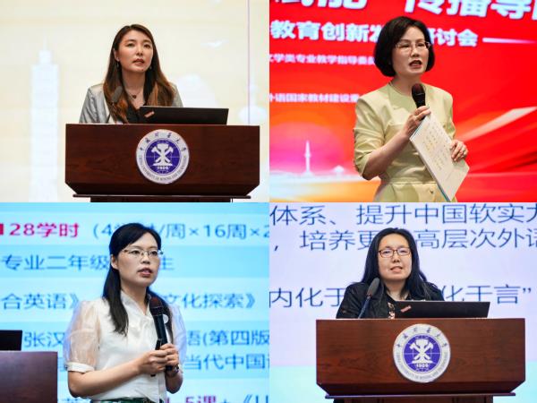 孙有中、袁靖宇、黄友义、杨枫分别以“深化‘三进’工作,助力教育强国建设”“全球竞合新格局下的中国高等教育重构”“高度重视‘三个意识’的培养——从对外翻译的角度看‘三进’”“人工智能时代外语教师的素养重构”为题作主旨报告;外研社高等英语教育出版分社英语专业部副主任万健玲、太阳成集团tyc33455cc官网副教授刘婷婷、华东理工大学副教授幸君珺和南京大学高级讲师张沂昀分别做工作交流。