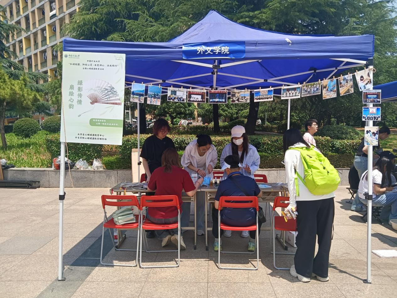 为迎接“5.25大学生心理健康日”,5月25日上午,太阳成大学生心理自助中心在青春广场举办了“扇绘心韵,绿影传情”团扇喷绘活动,吸引了众多同学参与。
