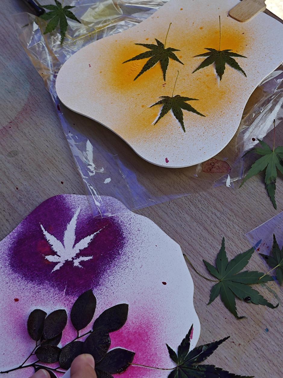 活动现场,同学们在空白团扇上摆放枫叶、红花檵木叶等树叶,随后用液体颜料喷绘。颜料交叠后形成独特的流沙质感,移开树叶后,一把精美的团扇便制作完成。工作人员回收并擦净叶片,供后续同学循环使用。每一把扇子都承载着创作者的情感,充分展现了同学们的个性与创造力。通过亲手制作团扇,同学们释放了内心压力,也提升了对美的感知与表达能力。