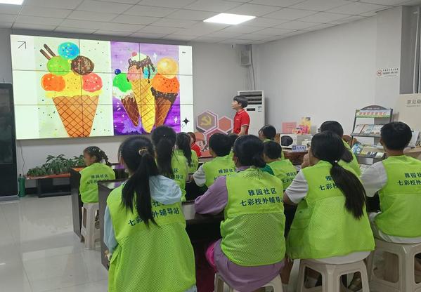 7月4日下午,实践团队赴雅园社区开展“缤纷夏天 多彩手绘”活动,与社区小朋友们一起用画笔绘出心中的夏天,展现无限创意与童真。