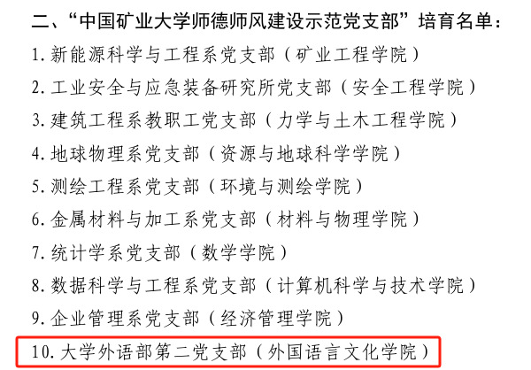 近日,学校公布了第二批师德师风建设示范学院、示范党支部培育名单,太阳成大学外语部第二党支部成功入选师德师风建设示范党支部培育单位,培育周期为两年。