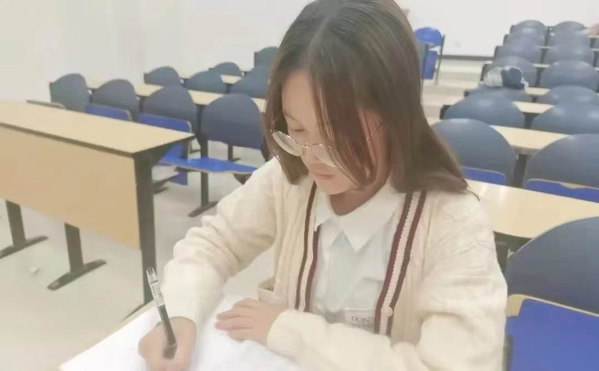 当谈论到学习时,她始终将其摆在第一位。她回忆起自己初入大学校园时的经历:初上大学,尽管感到有些迷茫,但是她始终坚持高中自律的学习习惯,始终保持清醒的头脑,抵制各种外界的诱惑。在英语专业学习中,她注意平时点点滴滴的积累,除了完成课堂任务,还会积极寻找外语学习资源,通过合理利用碎片化时间学习,充实自己的课外生活,提升自我。另外,她还分享了自己对日常时间的管理方法。她从来不懈怠每一次的早读和晚自习,把握住黄金记忆时间以及自我检阅机会。图书馆、自习室、博学楼、文科楼教室都是她的常驻地。在周末,她也仍保持早起的习惯,充分利用周末的时间对一周的学习进行总结与反思,沉淀自我,积蓄迎接下一周学习挑战的能量。