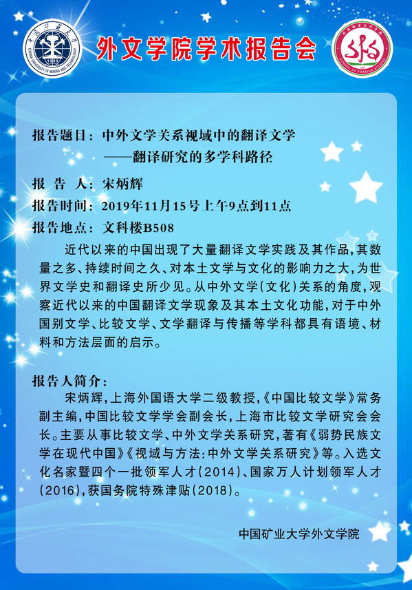 太阳成学术报告会——中外文学关系视域中的翻译文学 翻译研究的多学科路径