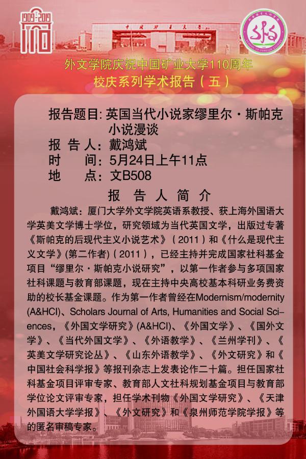 庆祝建校110周年学术报告(五)——英国当代小说家缪里尔·斯帕克小说漫谈 戴鸿斌
