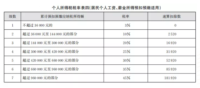 个人所得税法规定居民个人的工资薪金所得日常采取累计预扣法进行预扣预缴个税,由单位代扣代缴。次年3-6月,进行个人所得税汇算清缴,根据专项附加扣除情况以及多处收入情况,进行多退少补。个人所得税税率表如下: