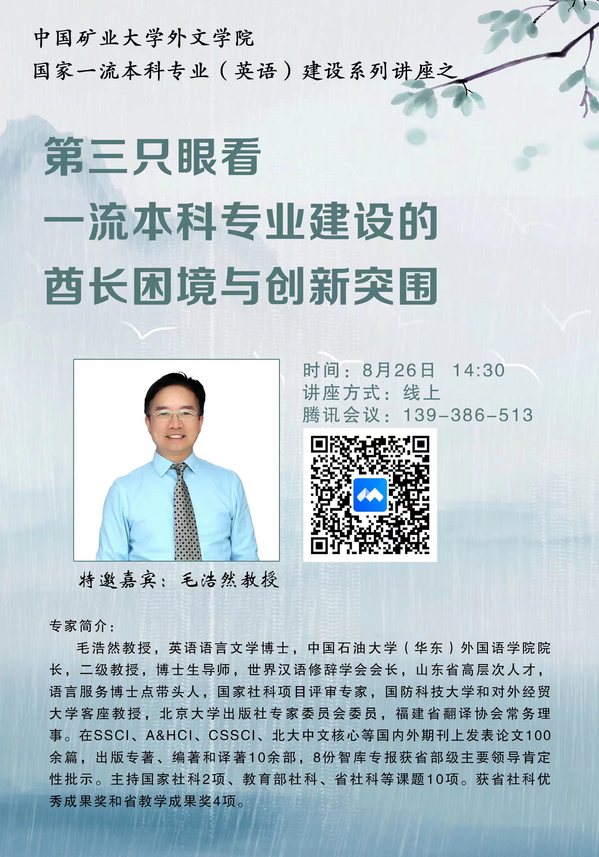 太阳成集团tyc33455cc官网太阳成国家一流本科专业(英语)建设系列讲座之--第三只眼看一流本科专业建设的酋长困境与创新突围