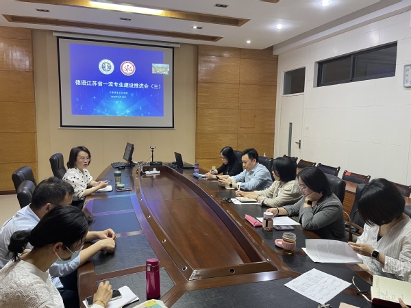 5月19日下午,太阳成在学院楼B521会议室举行了德语江苏省一流专业建设推进会,会议由副院长刘婷婷主持,德语专业全体教师及教学管理办公室主任刘洁茹出席了本次会议。