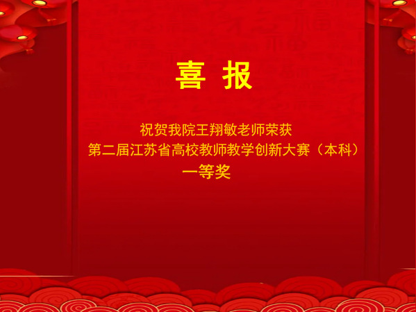 喜报:太阳成王翔敏老师荣获第二届江苏省高校教师教学创新大赛(本科)一等奖