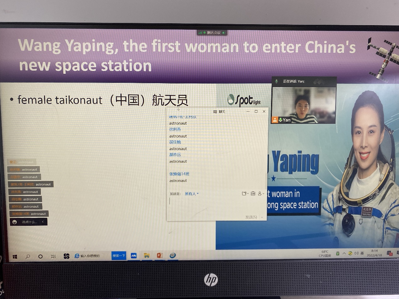 课前,李老师提前在班级群下达自主学习任务单,让学生充分预习内容,为课堂预热;课中,李老师重视营造线上课堂的仪式感和氛围感,如设置课堂铃声、上下课师生间温暖的问候、要求学生开启摄像头模拟真实课堂、让班级助教在上课期间随时抓取截图查看学生上课状态等;注重师生、生生线上互动,利用线上教学平台的各种功能(如分组讨论、小组汇报、组内互评、教师点评、聊天区发送消息、发送弹幕、发送图片、打手势等多模态的手段);采取多轮抢答、必答,激励不同水平的学生能参与课堂活动等;课后,李老师使用线上学习测试平台,补充、评估学生在线学习情况,并根据平台上生成的各类数据,进行教学反思,及时调整教学策略;她重视第一课堂与第二课堂的衔接与融合,充分利用我校英语学习品牌平台——英语角,开展内容新鲜健康、形式丰富有趣多类语言在线活动,充实封控期间学生的课余生活,助力学生提高外语素养和文化自信。技术赋能的大学英语线上课,以更加智慧、灵活的方式,点燃了学生们学习英语的激情,师生的教育教学和学习有了更广的空间和资源支持,课堂变得更加“饱满”。
