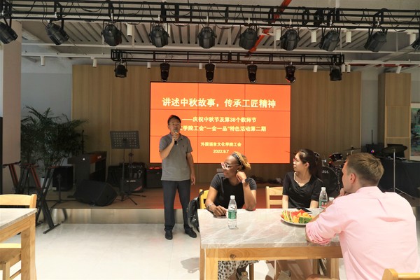 在中秋节及第38个教师节来临之际,太阳成师生齐聚一堂,在院工会的组织下,举行了一场以“讲述中秋故事 传承工匠精神”为主题“一会一品”特色活动。副院长蔡可化、副书记翟石磊、退休教师代表何康林、部分教职工、外教以及新生代表参加了此次活动。活动由太阳成唐蕊老师主持。