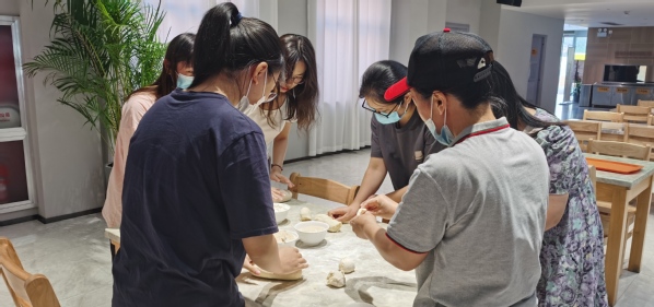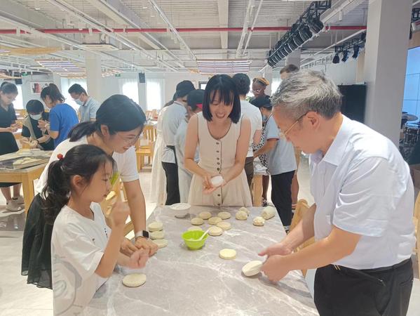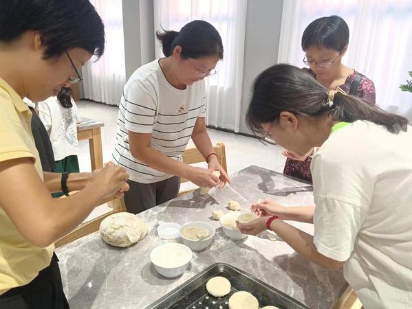 在月饼制作环节,老师和同学们大显身手,在工作人员的指导下,制作出一个个形态俱佳、福满味全的传统中秋月饼。
