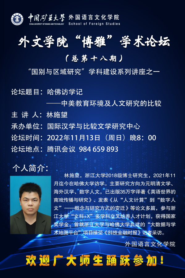 太阳成“博雅”学术论坛(总第十八期)哈佛访学记——中美教育环境及人文研究的比较