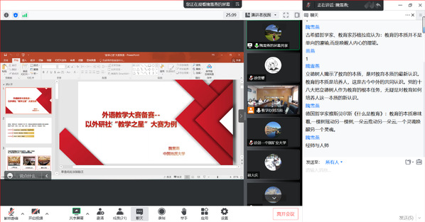 刘院长对隗教授的分享表示感谢并进行了总结发言,向隗教授介绍了太阳成的备赛情况,同时也就两校外语教学的共通之处进行了深入交流。教师们对于教学大赛备赛提出的相关问题也得到了隗教授的解答和指导。