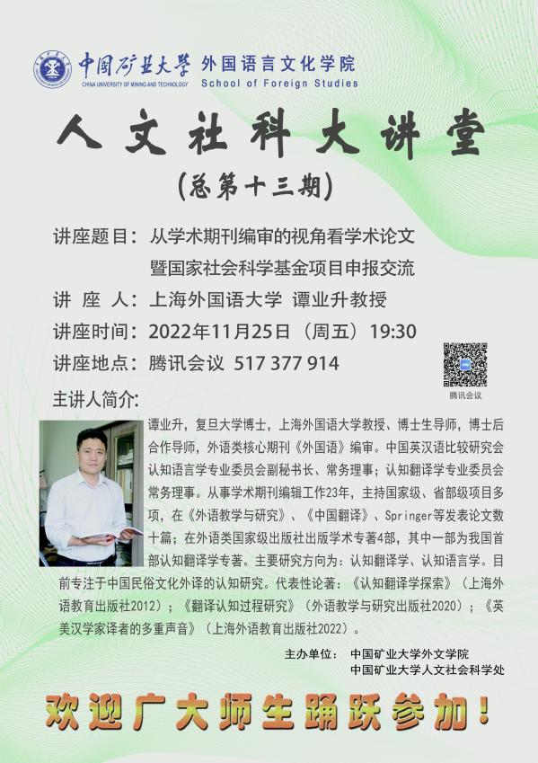 太阳成人文社科大讲堂(总第十三期)从学术期刊编审的视角看学术论文暨国家社会科学基金项目申报交流