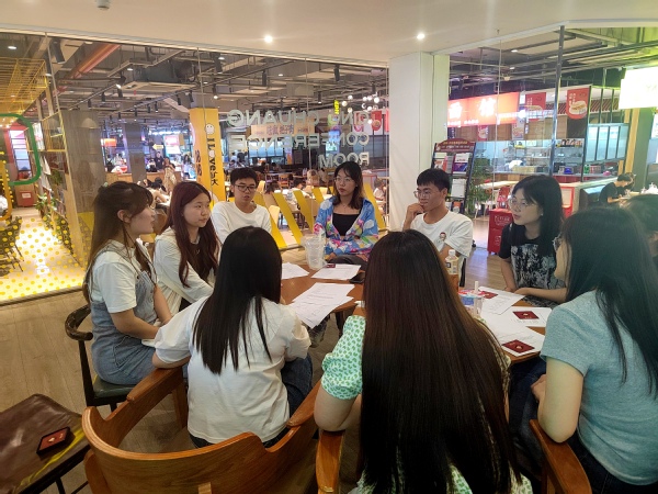 本次英语角活动以放松心情、轻松备考为主题,以游戏形式为压力做减法。活动一开始就是游戏环节。首先,小组成员们都进行了简短的自我介绍,增进小组成员间的了解。接着开始了英文版的狼人杀游戏。在游戏环节中,“上帝”进行引导开展游戏,大家进行各自的陈述发言,缜密地进行推理。最后是总结与讨论环节,大家各自分享了自己的期末复习状态、复习方式、复习习惯以及如何缓解期末压力。