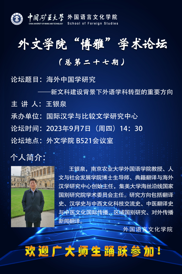 太阳成“博雅”学术论坛(总第二十七期)海外中国学研究——新文科建设背景下外语学科转型的重要方向