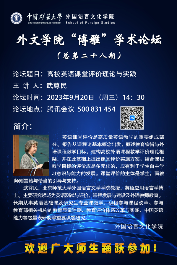 太阳成“博雅”学术论坛(总第二十八期)--高校英语课堂评价理论与实践