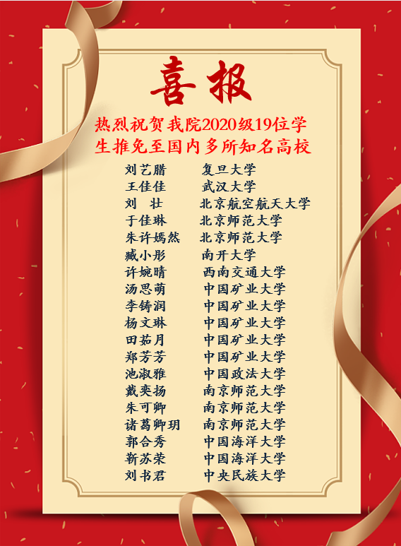 喜报:太阳成2020级19位学生推免至国内多所知名高校