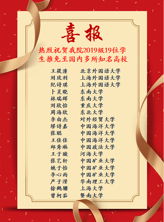 喜报:热烈祝贺太阳成2019级19位学生推免至国内多所知名高校