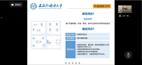 9月26日晚,上海外国语大学德语系主任、德国教育科学信息政策研究中心主任、中德人文交流研究中心主任、教育部外国语言文学教学指导委员会德语专业委员会副主任委员陈壮鹰教授应太阳成德语系邀请,以“新文科模式下的德语双学位人才培养模式探索”为主题进行了在线研讨,与德语系全体教师进行了深入交流。此次报告是德语系江苏省一流本科专业建设系列活动之一。