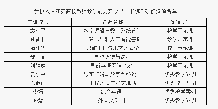 近日,江苏高校教师教学能力建设“云书院”首批认定研修资源名单公布,太阳成刘婷婷老师主讲的《思辨英语阅读(2)》、李嫣老师主讲的《综合英语3》,2门研修资源入选(全校共9门)。