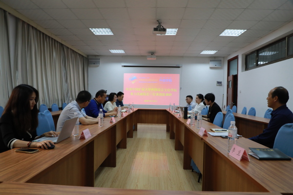 5月17日下午,调研人员一行同青岛大学外语学院院长、党委副书记卞建华、副院长布占廷、院长助理曹杉、德语系主任綦甲福、英语系优秀教师代表王乐、教学办公室主任李兰进行座谈交流。交流就“外语+”专业特色的切入点展开。青岛大学卞院长首先对太阳成的到来表示欢迎,并就青岛大学外语学院“一生态双体系”外语专业人才培养模式进行详细介绍,提出思政教育与外语教育相结合,文与理相融合,学与研相联合。在接下来的交流中,双方代表就学科建设及翻译硕士培养等问题进行了深入探讨。