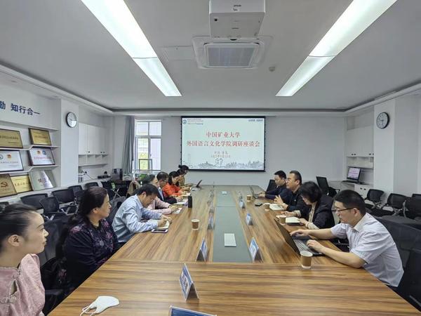 5月19日上午,调研人员走访调研了中国石油大学外国语学院,同党委书记朱惠平、院长毛浩然、副院长张建科、副院长郭月琴、青年泰山学者程璐璐、优秀年轻教师赵婷廷、李燕云、郑琳、董金娣进行了座谈。交流以行业特色、外语学科、校本特色融合路径探索为主题展开,就人才引进、师资建设,学科专业建设和大外教学,研究生公共外语教学等方面进行具体讨论。毛院长表示,外语学科面临协同育人机制缺乏、跨学科融合路径单一等方面的挑战,外语专业要以地方及学校政策支持为依托加强高层次人才引进,以学科发展促进师资队伍建设,同时注重学生全球治理、AI等意识的培养。